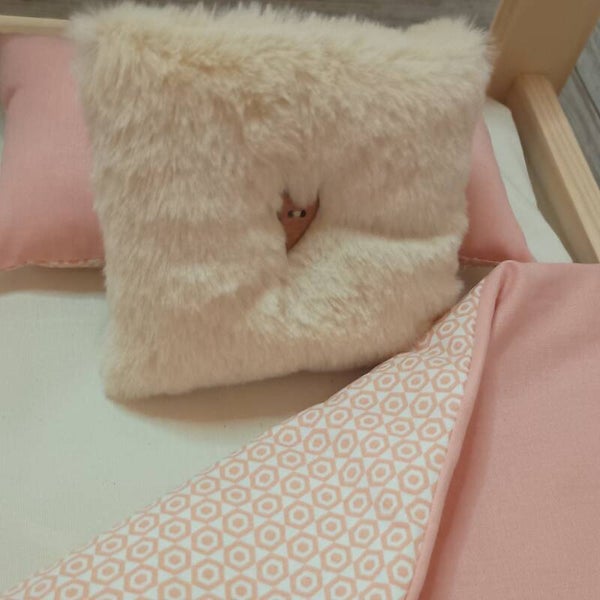 Zum Verkauf steht ausschliesslich die Puppenbettwäsche (3-teilig). Das auf den Fotos gezeigte Puppenbett sowie Dekoration (z. B. Teddybär) sind nicht Bestandteil des Angebots.